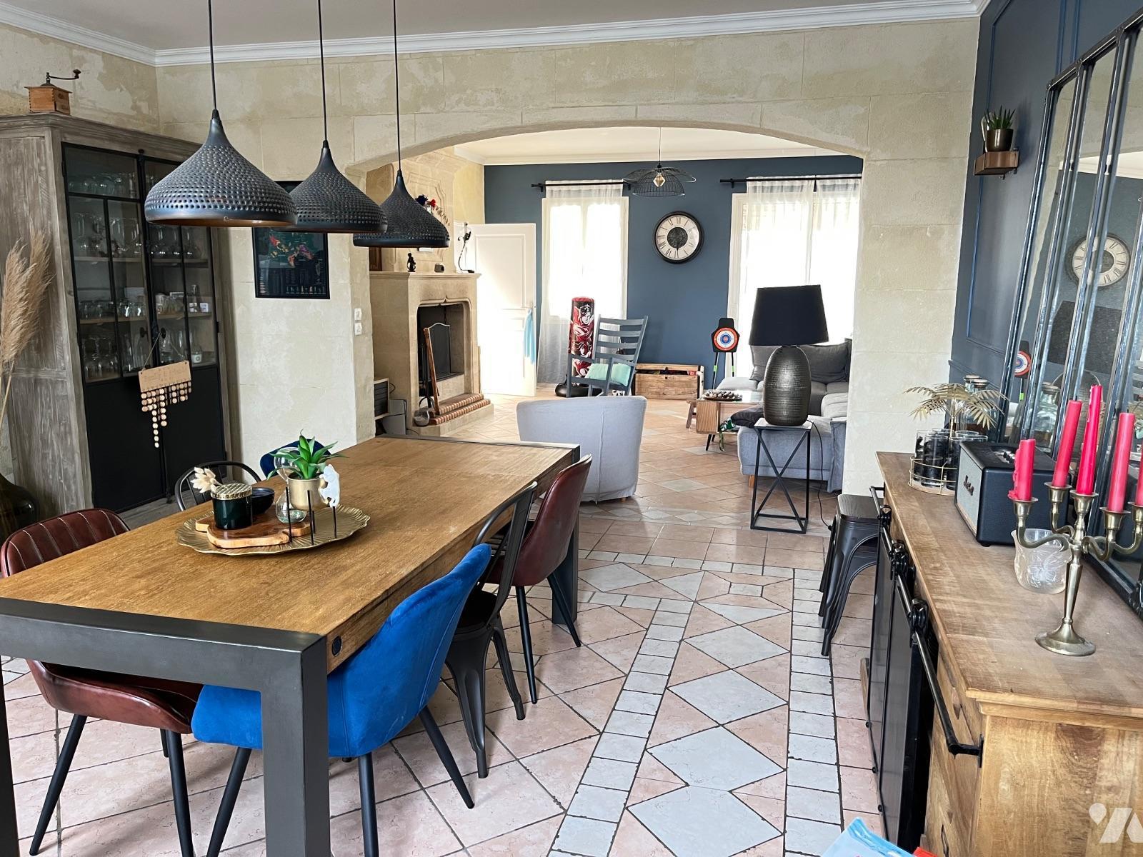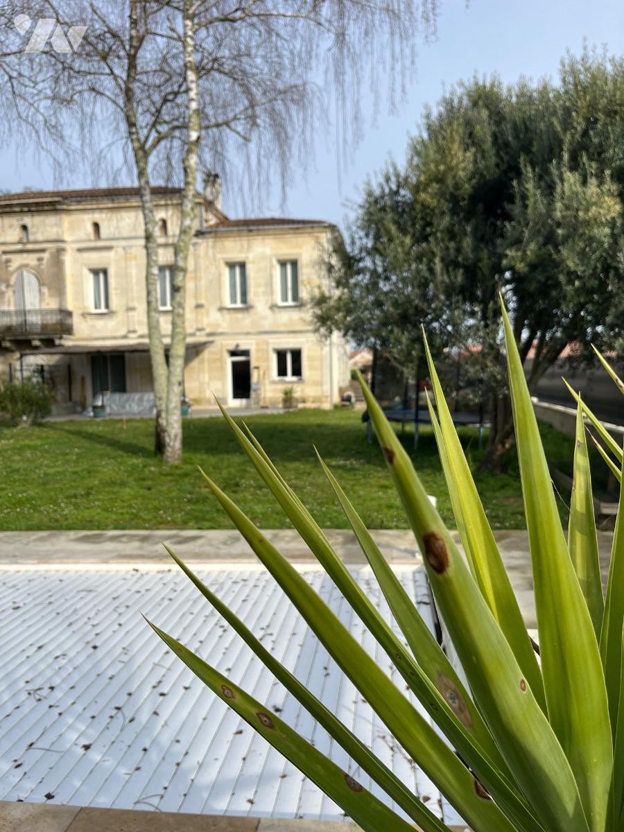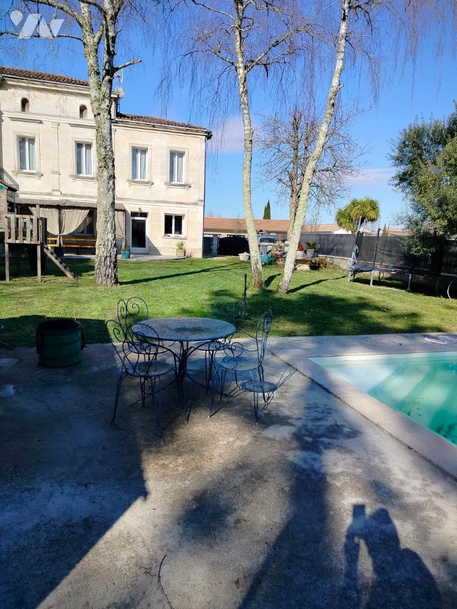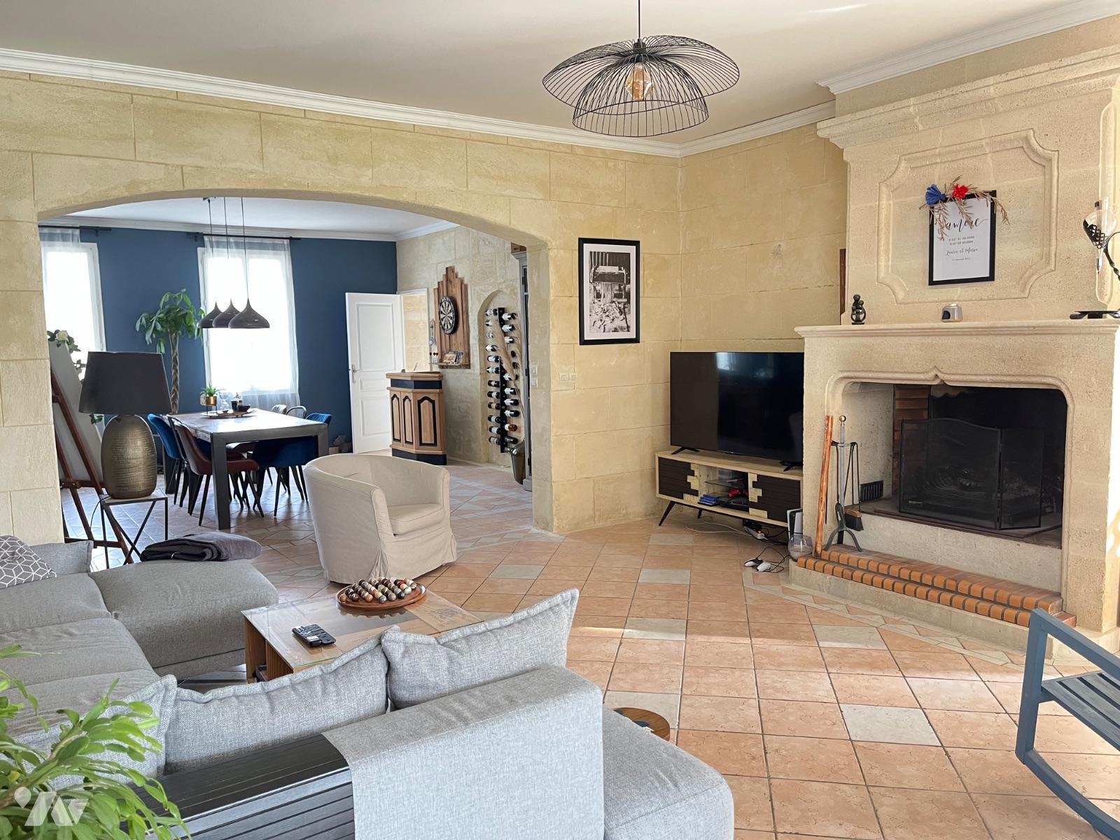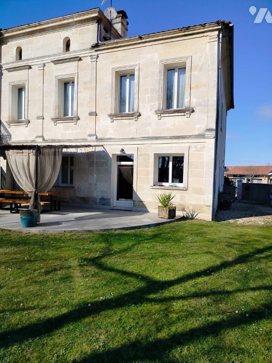 Maison à Vendre à Villegouge (33141) en Gironde (33), 12 min de LIBOURNE, maison en pierre en bon état sur 732 m² avec PISCINE, 193 m² habitables comprenant au rez-de-chaussée : entrée, double séjour avec cheminée 57 m², cuisine aménagée 24 m², cellier/arrière cuisine, wc, à l'étage : 4 chambres dont une avec une salle d'eau (23,3 m², 25,4 m², 14,6 m², 12,76 m²), salle d'eau (7 m²), wc, grenier aménageable